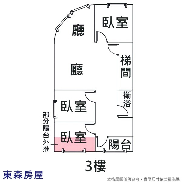- 格局:3房(室)2廳1衛浴